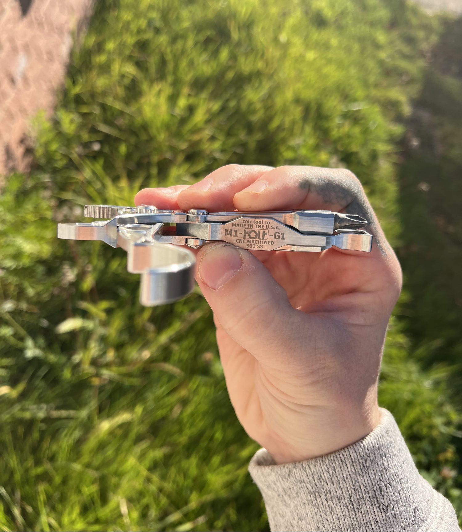 A multi tool carved from a solid chunk of metal. No casting, no punched sheet metal, no forging, no molds. All parts are CNC Machined from Billet stock.