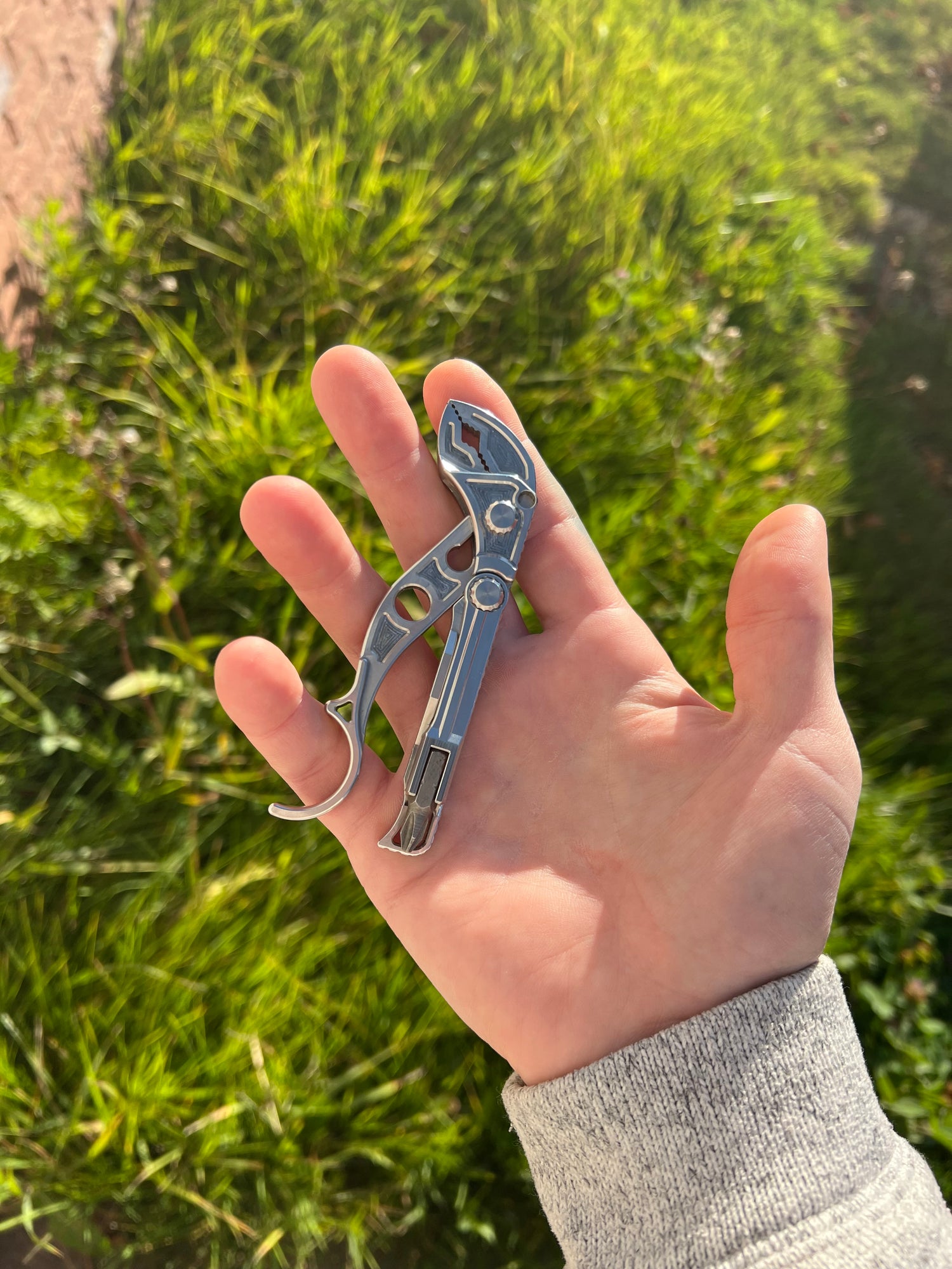 A multi tool carved from a solid chunk of metal. No casting, no punched sheet metal, no forging, no molds. All parts are CNC Machined from Billet stock.